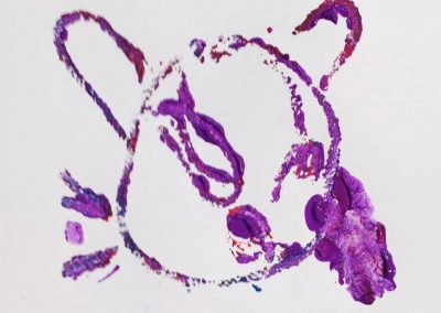 - Pick up the cat yarn plate and set it carefully face down on the paper, with the wet paint going onto the paper. Don’t slide it around, go slowly!
