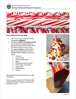 Inspire the class. The best way to get things, though, is to make sure the students are really excited about the project. Tell them all about the things they need to bring and that it’s their responsibility (not their parents’), to make sure they bring the 2 items for the HOUSE, and a bag or two of hard candy.