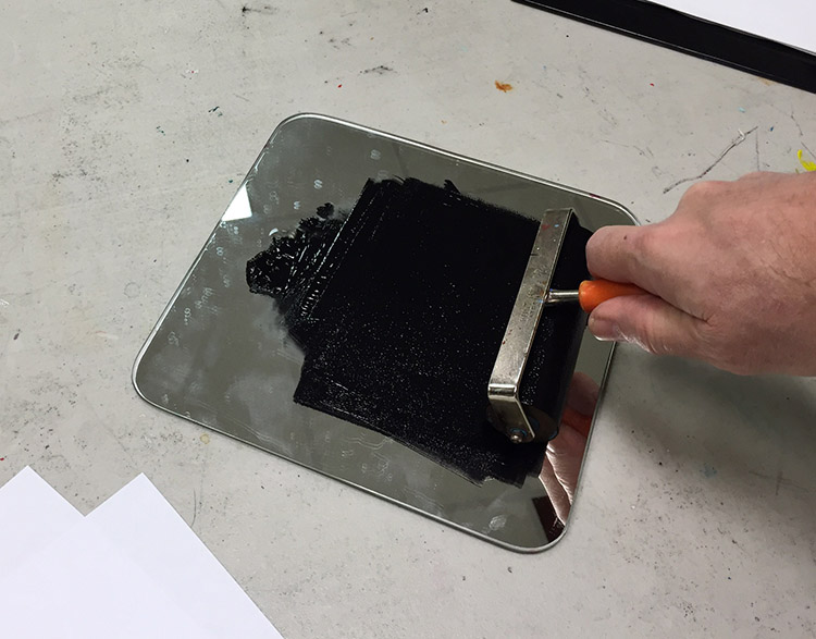 - Ink – Add printing ink to the plate with a roller. You’ll do this part with some help.