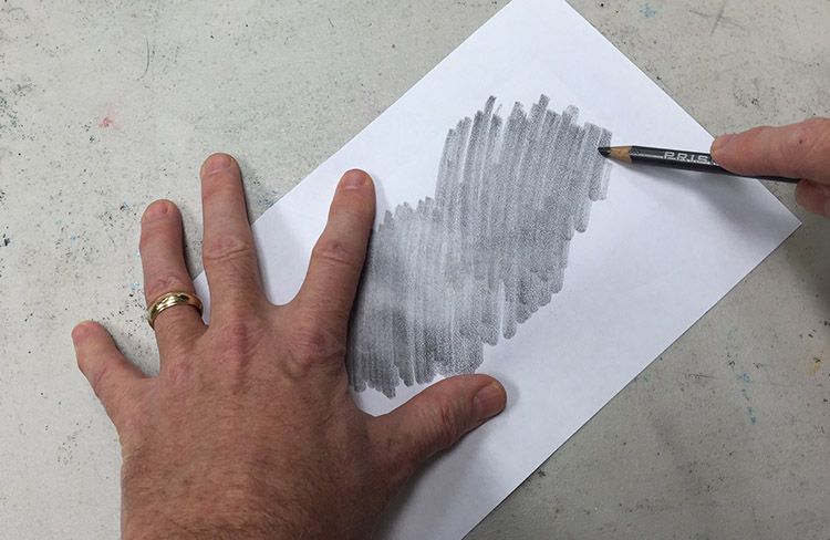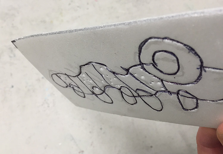 Students then use the ice skater method to very gently trace over the lines. Remind them over and over to keep their pen straight up and draw gently on the surface.