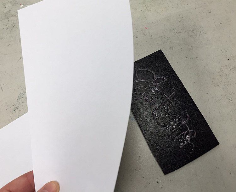 - Paper – Place a piece of paper over the inked plate, but be careful to not let it move at all once it touches the ink.