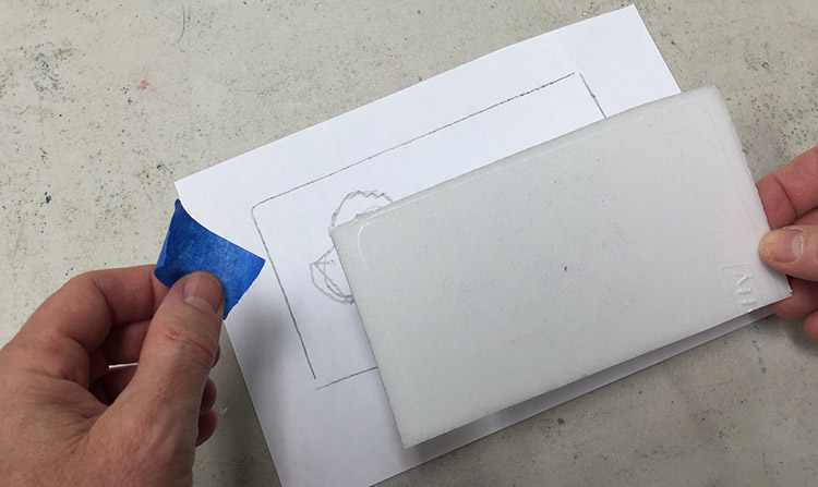 If you didn’t get it done during the last step, ask a helper to transfer their drawings to the printing plate. Have an ebony pencil and tape ready.