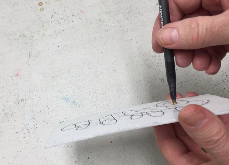- Trace – You’ll trace the lines in the foam plate using a ball point pen held STRAIGHT UP! Be careful not to press very hard. Point the pen up to the ceiling.