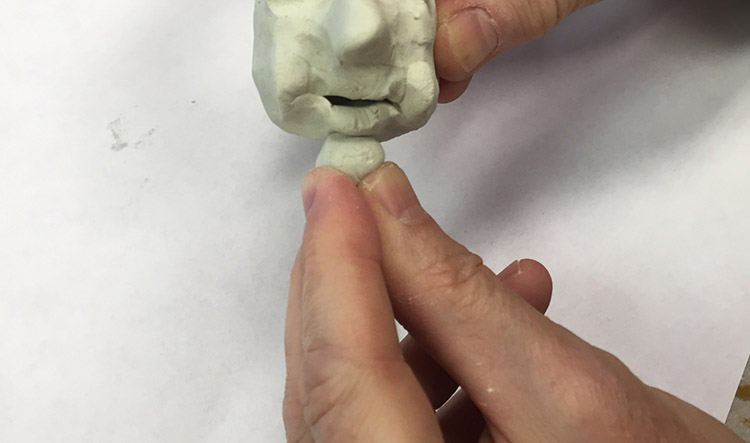 - Pinch off a small piece of the clay and set it aside to create the head.